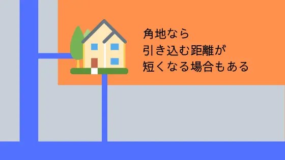 もし、敷地が角地にあるなら、もう一方の道路に本管が通っている可能性もあるので、距離が短い方から引き込めば、工事費が安くなります。